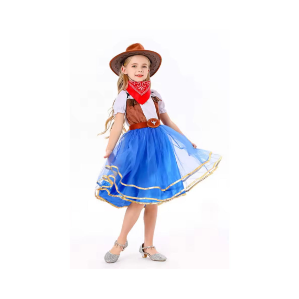 - Classic Western Cowgirl Look: Includes a stylish two-piece dress, red bandana, and brown cowgirl hat—perfect for every little rodeo queen!