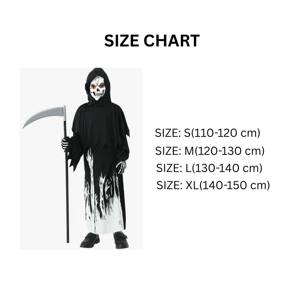 • Glow-in-the-Dark Details: The robe and gloves light up the night for extra spooky effect—perfect for haunted houses or trick-or-treating.