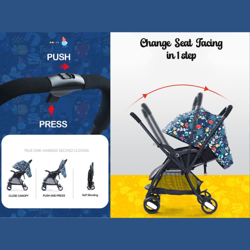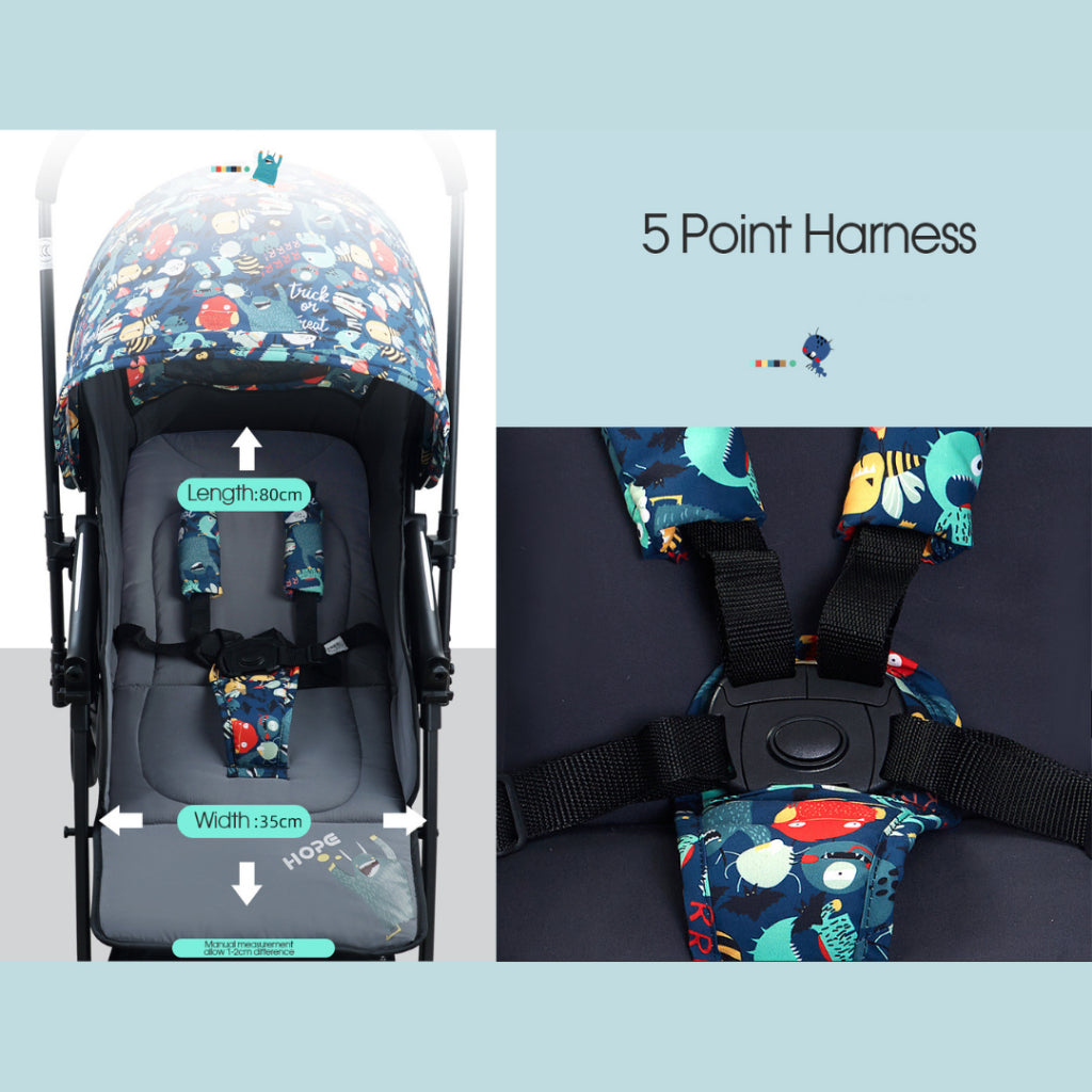 Additional features like a removable front bar, detachable/washable storage basket, infant cushion, and a secure 5-point harness make this stroller as functional as it is stylish. Designed for everyday use, it’s the perfect balance of safety, comfort, and convenience.