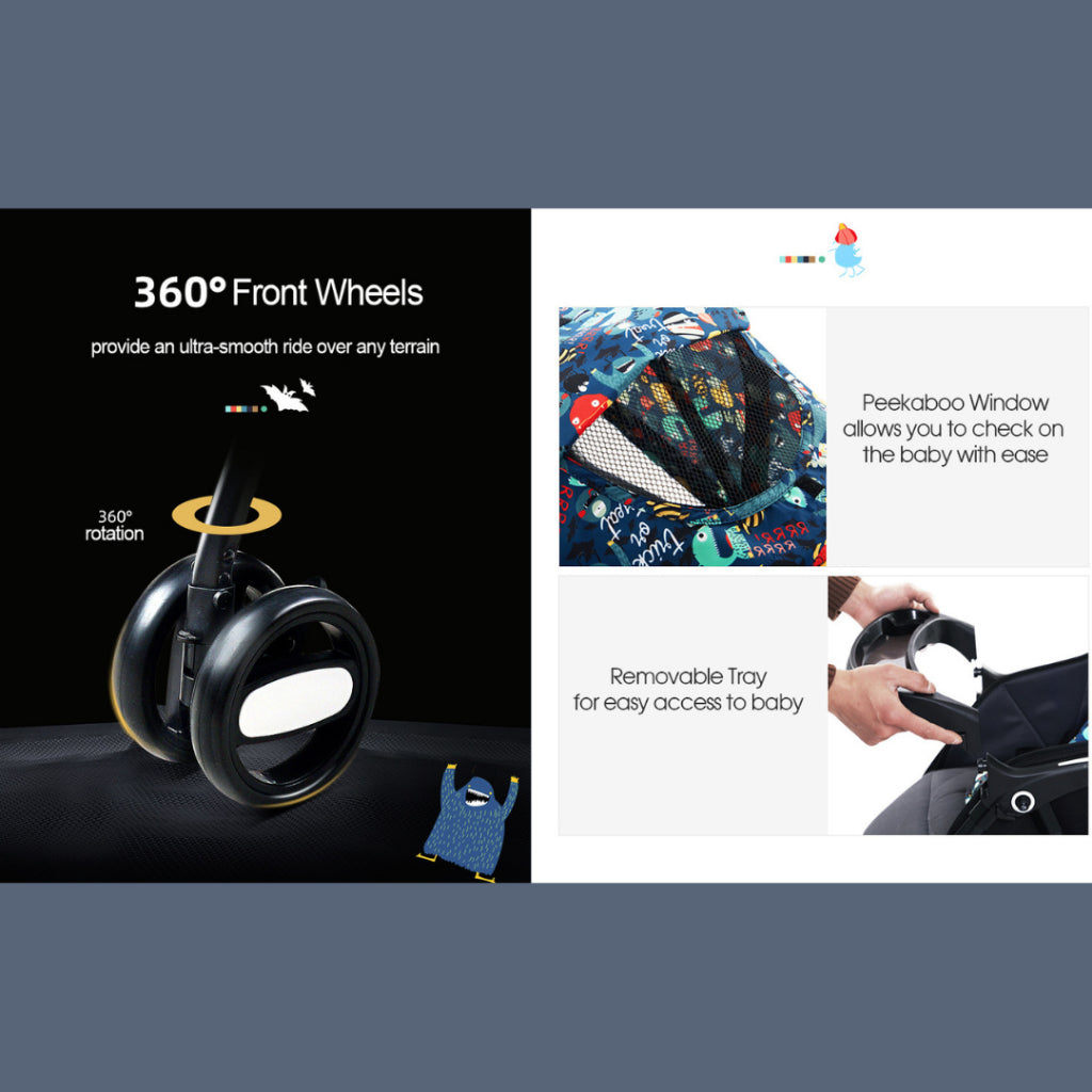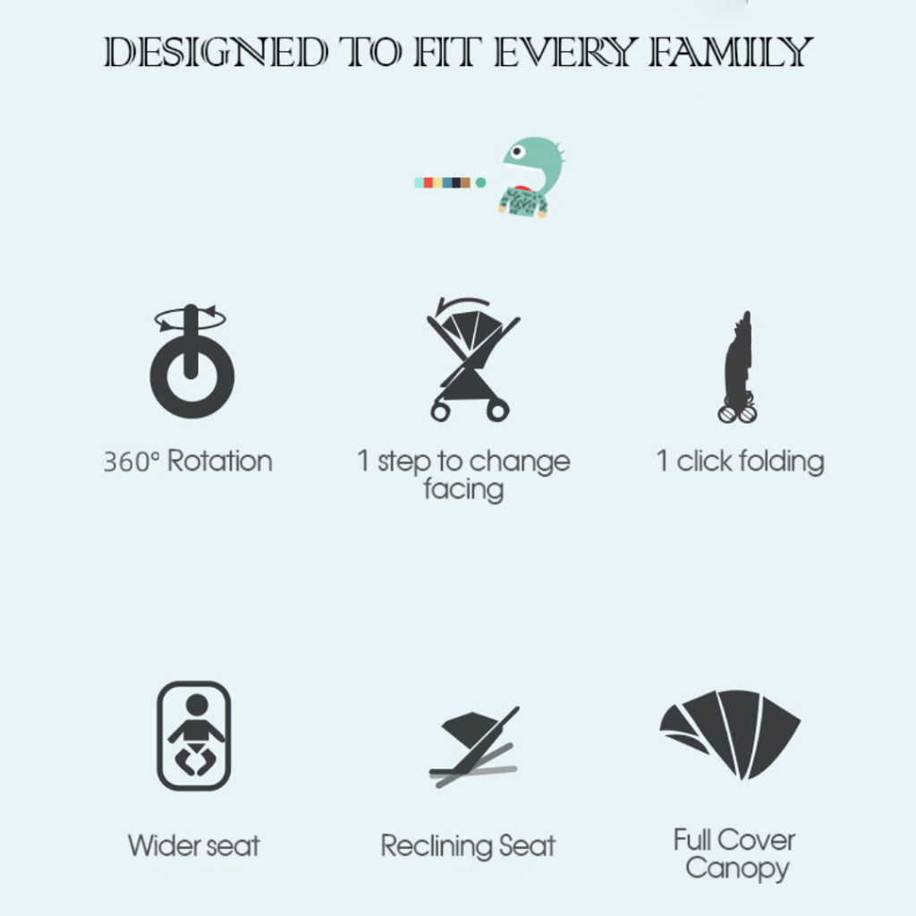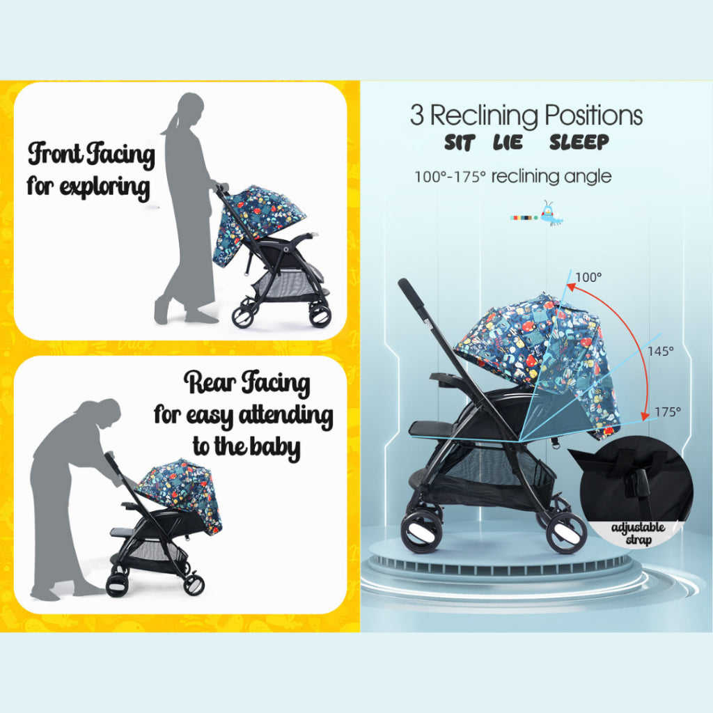 Navigate with ease using the 8-wheel suspension system, front swivel wheels, and a rear safety stopper for extra control. Whether you're strolling through tight aisles or park paths, this stroller makes every trip smoother. Plus, the reversible handle lets you switch between forward-facing and parent-facing modes effortlessly.