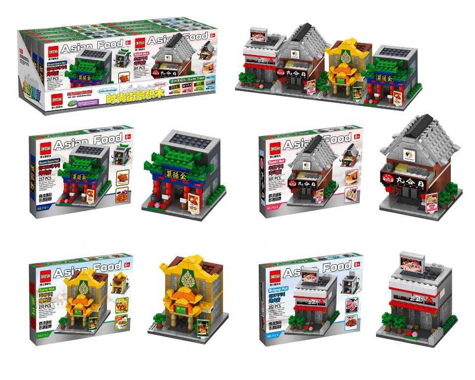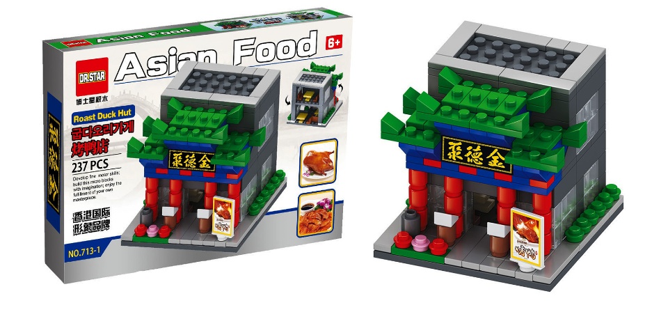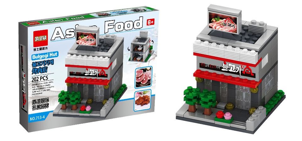 KIDMORO Asian Food Bricks Game, Roast Duck, Sushi, Curry, and Bulgogi Hut