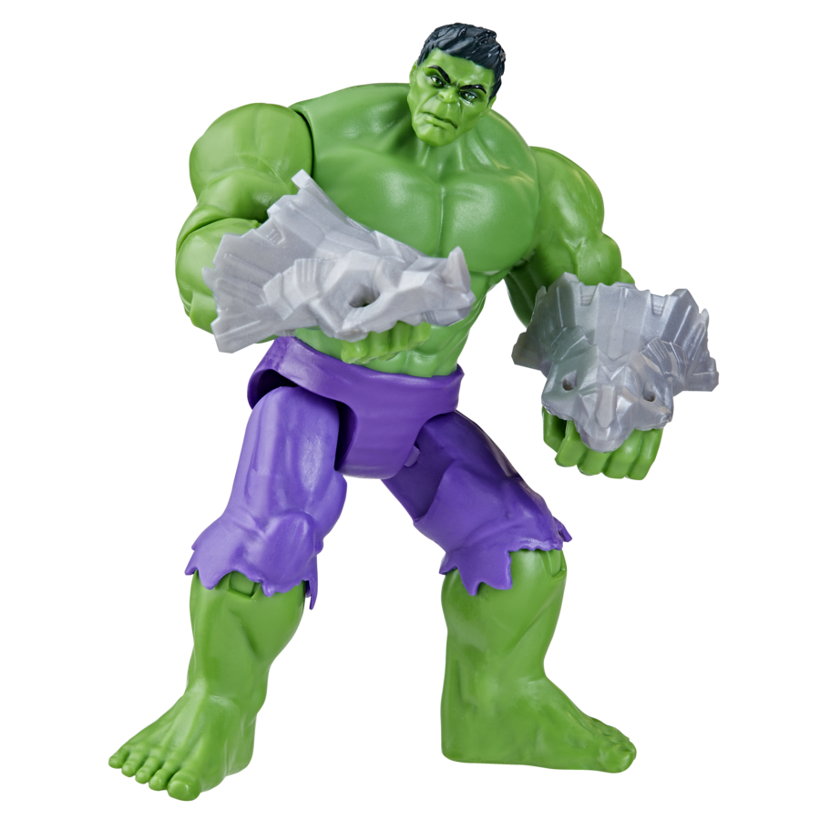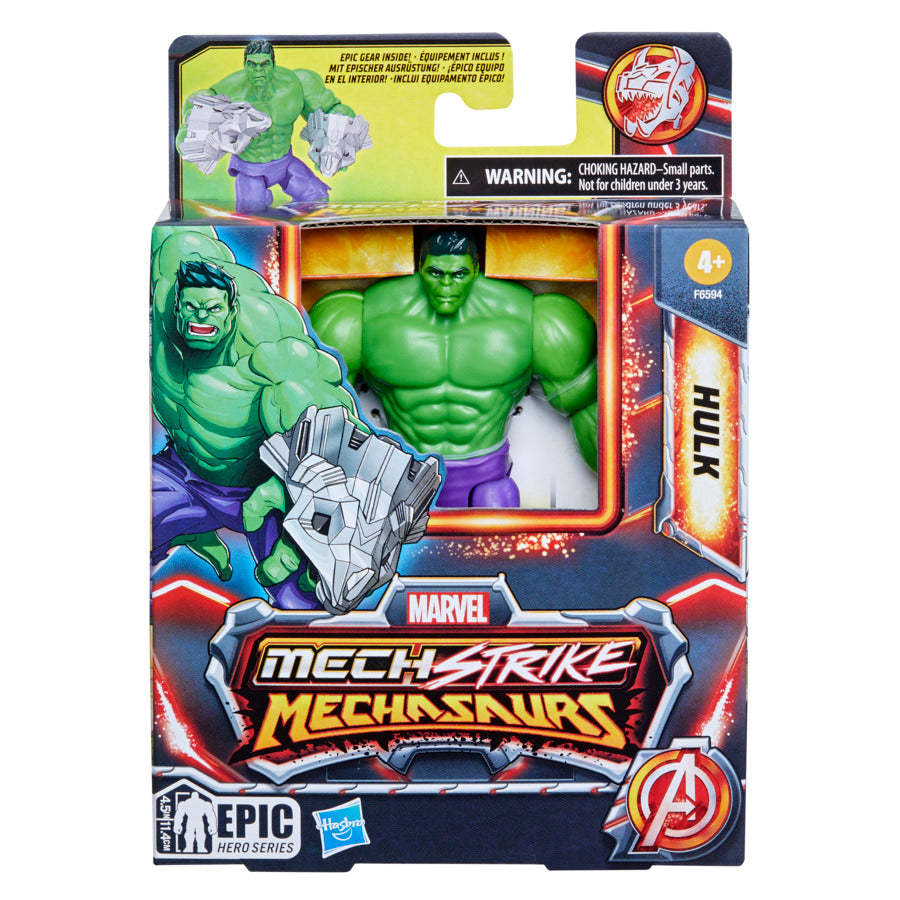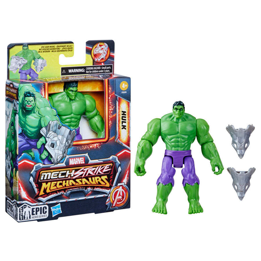 FIGURE WITH DINO ACCESSORIES: This larger 4.5-inch-scale Hulk action figure includes 2 Mechasaur dino fists that can be detached and re-attached from the figure's hands.