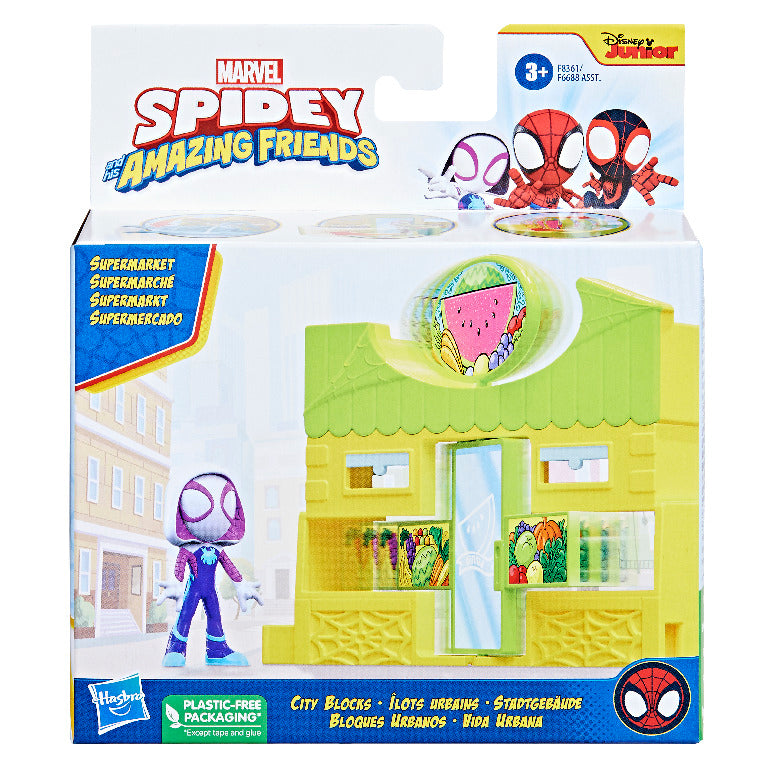 Marvel Spidey and His Amazing Friends City Blocks Ghost Spider Supermarket, Kids Playset, Action Figure Playset for Ages 3 and Up