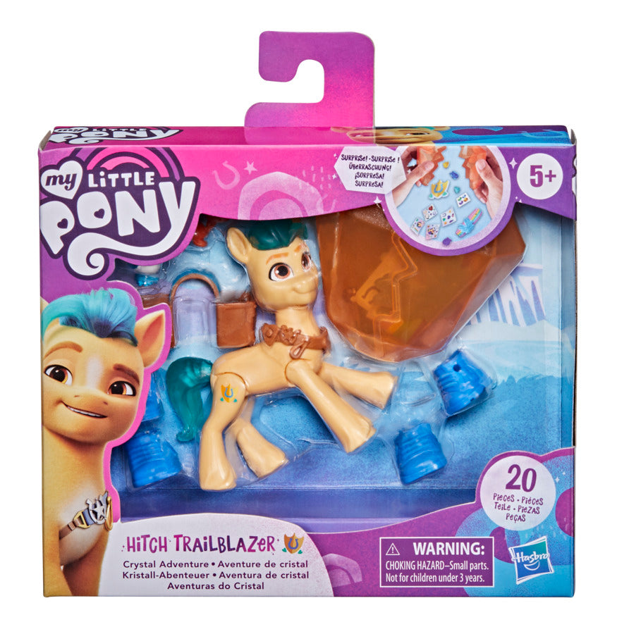 Includes an articulated 3-inch Hitch Trailblazer pony figure with molded purple hair in her signature wavy style.