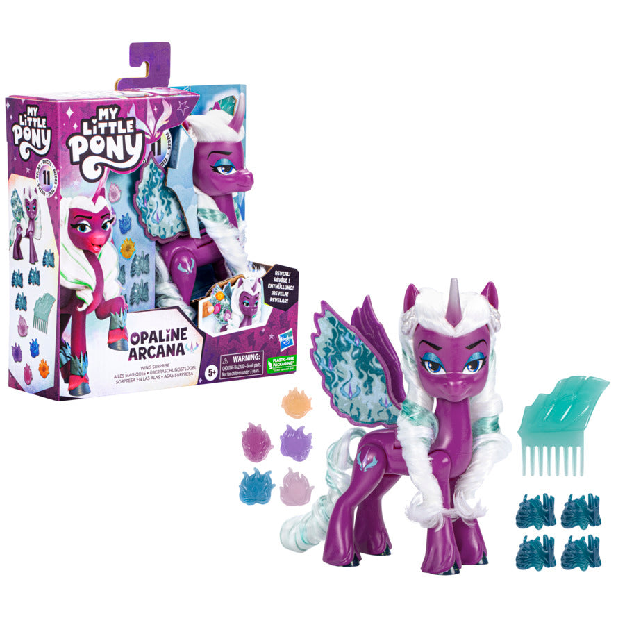 Discover magical secrets with My Little Pony Wing Surprise Opaline Arcana toy! Opaline is a Fire Alicorn villain who tries to steal ponies' Cutie Marks in the My Little Pony: Make Your Mark show.