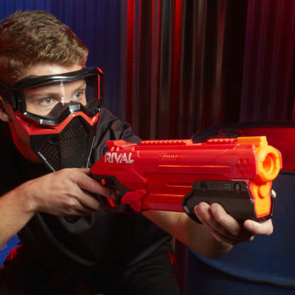 PUMP-ACTION NERF RIVAL BLASTING -- Pump the handle to prime the breech-load Nerf Rival Takedown XX-800 blaster and fire 8 rounds in a row to take on the opposing team in high-intensity games.