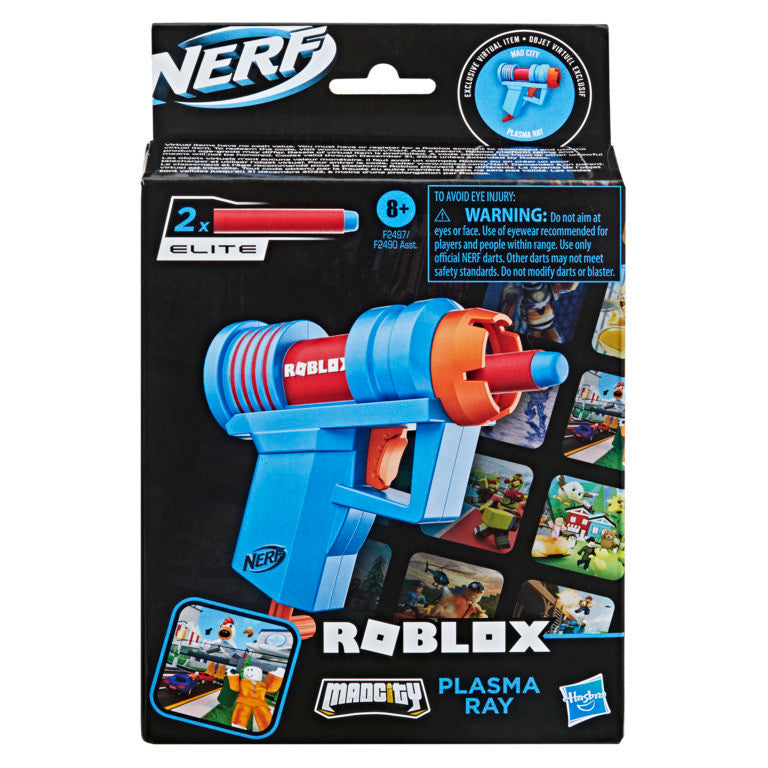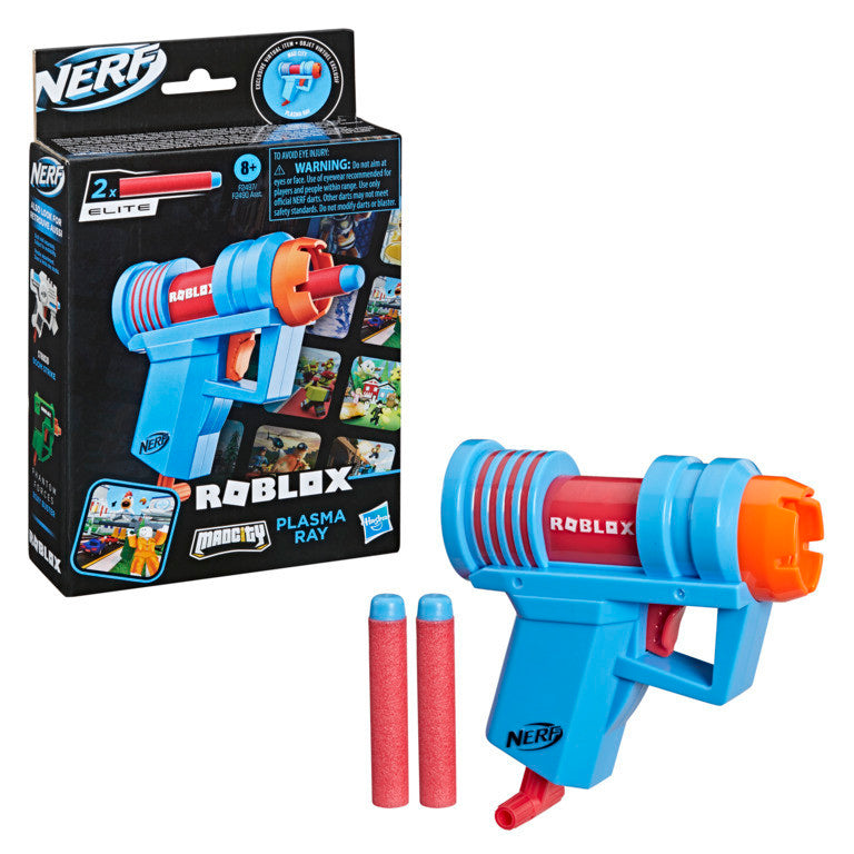 • NERF ROBLOX MAD CITY: PLASMA RAY DART BLASTER: This dart-firing blaster takes its inspiration from the Roblox game Mad City