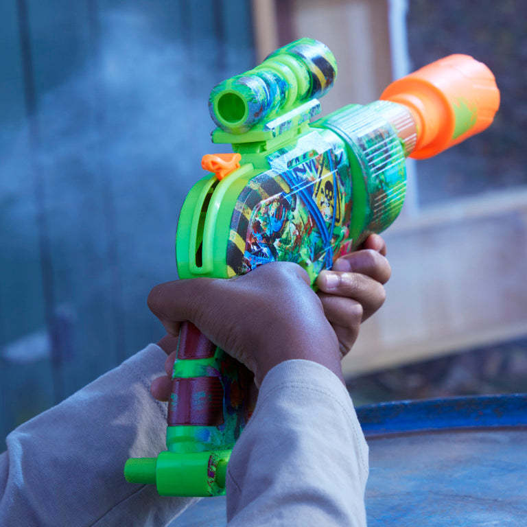 • GREAT GIFTS FOR ZOMBIE FANS AND KIDS GAMES: Nerf zombie-themed blasters are fun for kids backyard games, great accessories to add to a costume, and awesome eye-popping blasters for Nerf battlers. Each sold separately, subject to availability