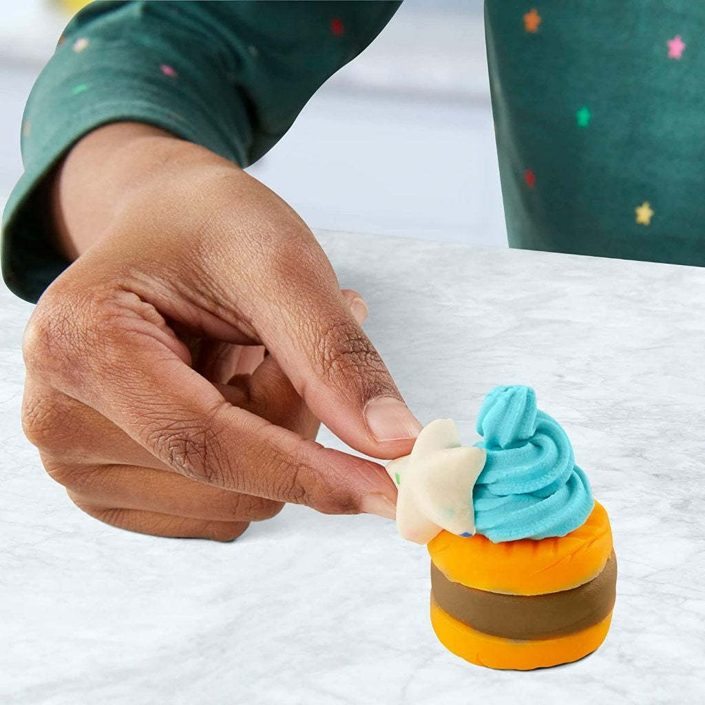 LOTS OF CREATIVE WAYS TO DECORATE: top creations with make-believe frosting and sprinkles using the extruder tool or the spatula tool, and make fun Play-Doh sweets, decorations and toppings using the half-moulds on the side of the toy mixer.
