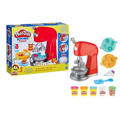 CREATE LOTS OF COLOURFUL PLAY-DOH TREATS: with the Play-Doh Kitchen Creations Magical Mixer Playset, children can play pretend baker and easily create and decorate eight different shapes of Play-Doh cakes, cupcakes and cookies!
