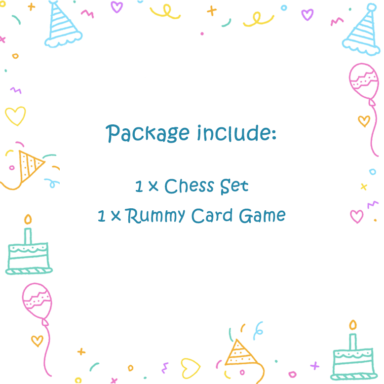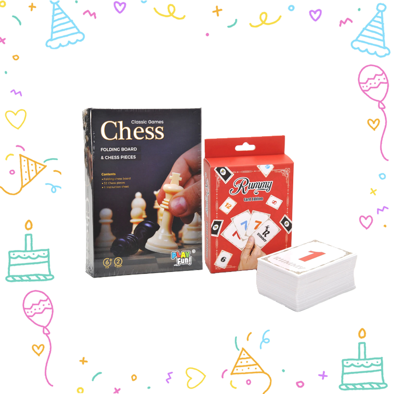 Playfun Goodie Bag for Boys Age 6 - 12 Years, Portable Chess Set and Rummy Card