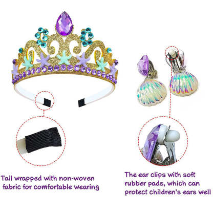 Fashion accessories: 1pc wand/scepter, 1pc tiara/crown, 1pc necklace, 1pc finger ring, 1pc bracelet, 1 pair of gloves, 1 pair of earrings;