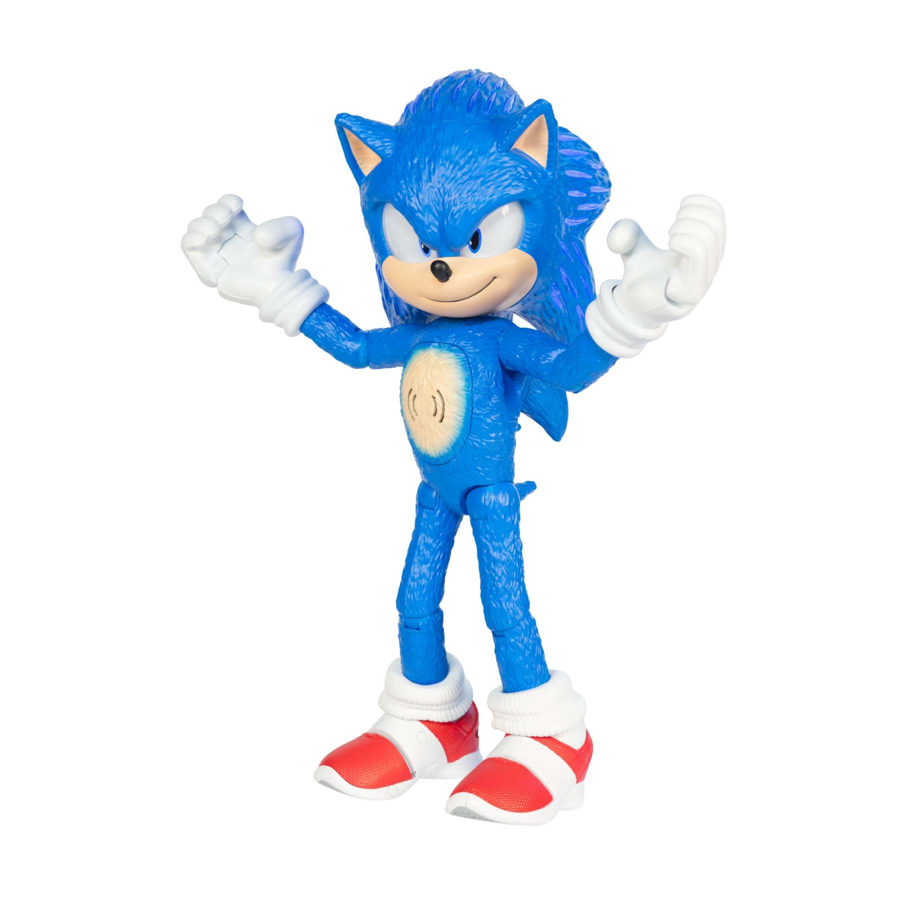 Bring home the excitement of the Sonic the Hedgehog movies with this 12-inch Ultimate Talking Sonic Figure! Perfect for kids ages 3 and up, this highly detailed, movie-inspired figure features over 30 iconic phrases and sounds from the films. Activate light-up eyes and quills by pressing Sonic's chest, and trigger even more action by pressing his hands and sneakers. With 15 points of articulation and realistic movie styling, this figure is ideal for both playtime and display. Bring Sonic's speed and adventure to life with this must-have collector’s item!