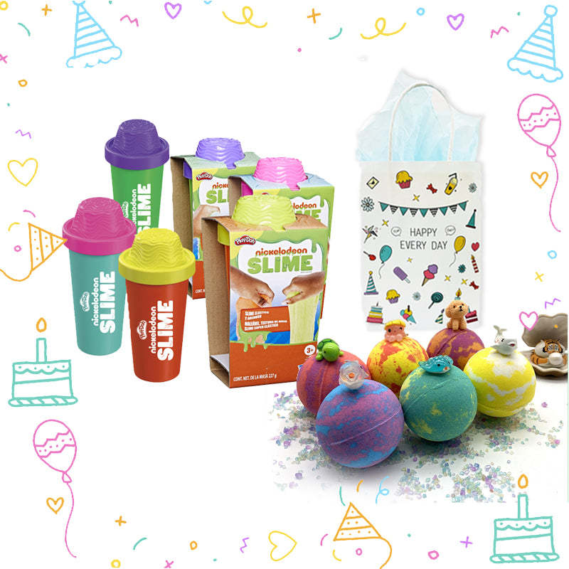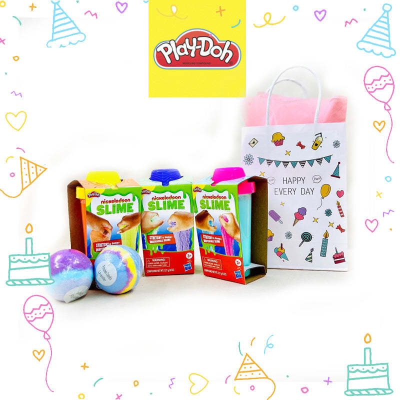 Stretch & Relax Goodie Bag for Boys and Girls Aged 3 Years Plus, Play-Doh Stretchy & Sandy Waterfall Slime, and Bath Bomb