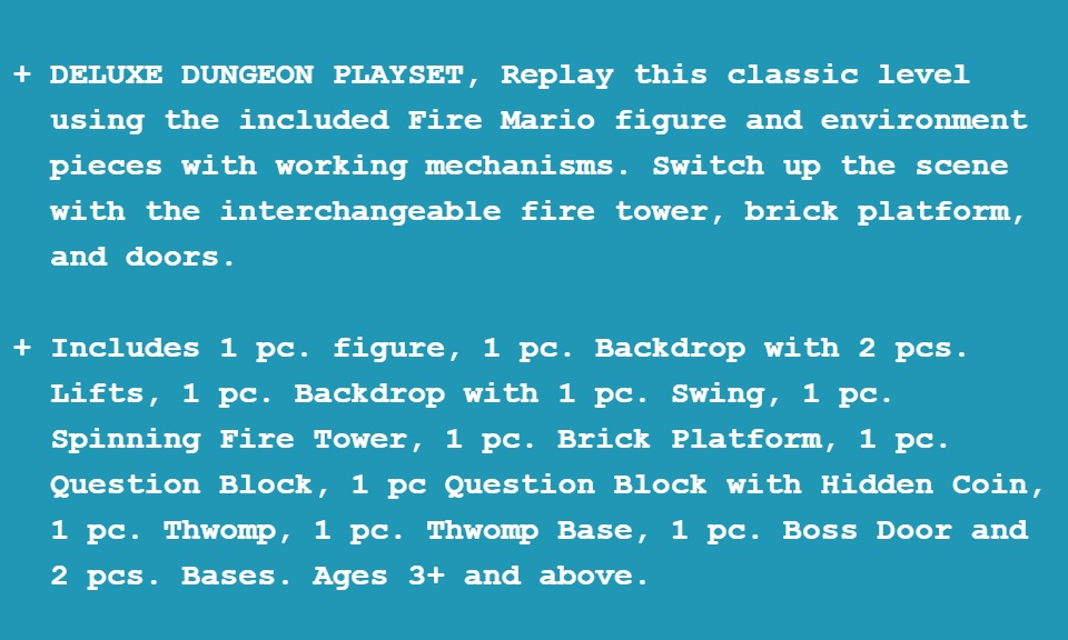 Super Mario Dungeon Deluxe Play Set, Includes: 2.5” Fire Mario Figure & 7 Interactive Environmentpiece Moving Platforms & Thwomp, Spinning Fire Balls, Hidden Coin, Swing, & Door Super Mario Dungeon Deluxe Play Set, Includes: 2.5” Fire Mario Figure & 7 Interactive Environmentpiece Moving Platforms & Thwomp, Spinning Fire Balls, Hidden Coin, Swing, & Door Super Mario Dungeon Deluxe Play Set, Includes: 2.5” Fire Mario Figure & 7 Interactive Environmentpiece Moving Platforms & Thwomp, Spinning Fire Balls, Hidden Coin, Swing, & Door Super Mario Dungeon Deluxe Play Set, Includes: 2.5” Fire Mario Figure & 7 Interactive Environmentpiece Moving Platforms & Thwomp, Spinning Fire Balls, Hidden Coin, Swing, & Door Super Mario Dungeon Deluxe Play Set, Includes: 2.5” Fire Mario Figure & 7 Interactive Environmentpiece Moving Platforms & Thwomp, Spinning Fire Balls, Hidden Coin, Swing, & Door Super Mario Dungeon Deluxe Play Set, Includes: 2.5” Fire Mario Figure & 7 Interactive Environmentpiece Moving Platforms & Thwomp, Spinning Fire Balls, Hidden Coin, Swing, & Door Super Mario Dungeon Deluxe Play Set, Includes: 2.5” Fire Mario Figure & 7 Interactive Environmentpiece Moving Platforms & Thwomp, Spinning Fire Balls, Hidden Coin, Swing, & Door