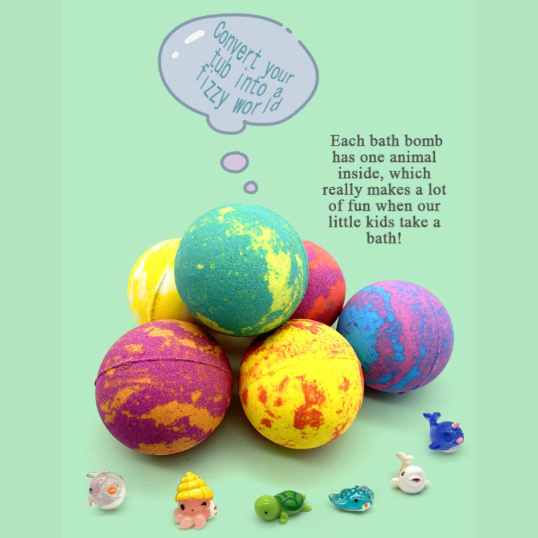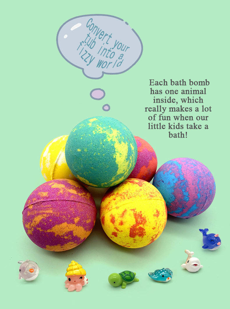 【Tempting & Exciting】It fizz and quickly dissolves many bubbles when a bath bomb is thrown into the water. Giving the water a brilliant color, each kid's bath bomb has a surprise toy inside, which makes the bath bomb super fun for kids!